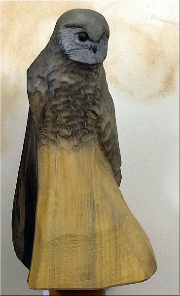 Eulenskulptur Pappel - Teilstück, Höhe ca. 62 cm, grundiert, mehrfach farbig geölt und lasiert, mehrfach farblos geölt, 270,- €