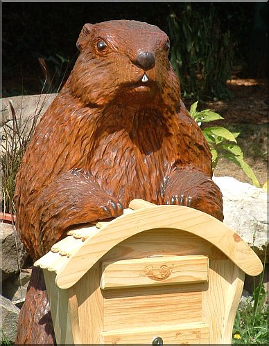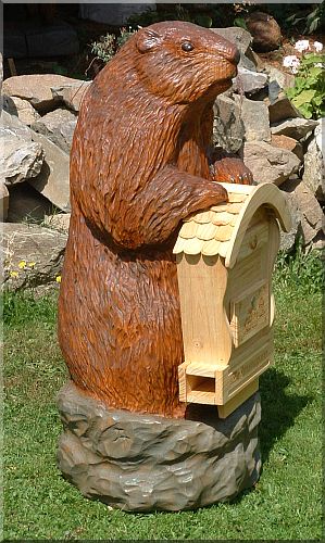 Gewünscht wurde ein Post- Murmeltier für diesen Briefkasten und aus eigenem Holz