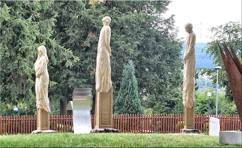 Auf einem Teil des alten Breidenbacher Friedhofes entseht ein Skulpturenpark. Thematisch in die Historie des Platzes eingebunden, wurden dafür drei neue Skulpturen gefertigt. Angrenzend an den Skulpturenpark sind noch gepflegte Grabstätten vorhanden. Bereichert wird der Park durch verschiedene Metallobjekte, einem aus Steinen dargestellten Bachlauf und einer Anlage mit der Abbildung der ersten urkundlichen Erwähnung von Breidenbach im Jahre 913. Zwei Kindergärten, die Schule und eine Kirche bilden den Rahmen für den Skulpturenpark. Höhe 2,6m - 3,2m, grundiert, mehrfach farbig lasiert, Preis auf Anfrage
